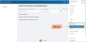 - Klikk på feltet der navnet ditt står og velg «Administrasjon», «Koordinatorer og Administratorer» -du kan søke etter og velge en spesifikk person