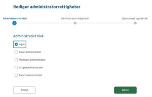 3. Under «Brukerrettigheter»: Klikk på blyanten og endre administrative roller til ingen. Klikk på «Neste» og fullfør redigeringen.