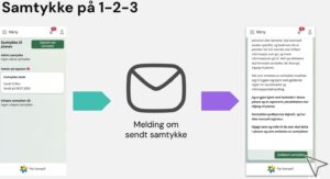 - Du vil som foresatte/ungdom få en melding med lenke til samtykket i Flyt Samspill, og varsling på SMS/e-post dersom du har valgt dette under «varslingsinnsillinger» i Flyt Samspill